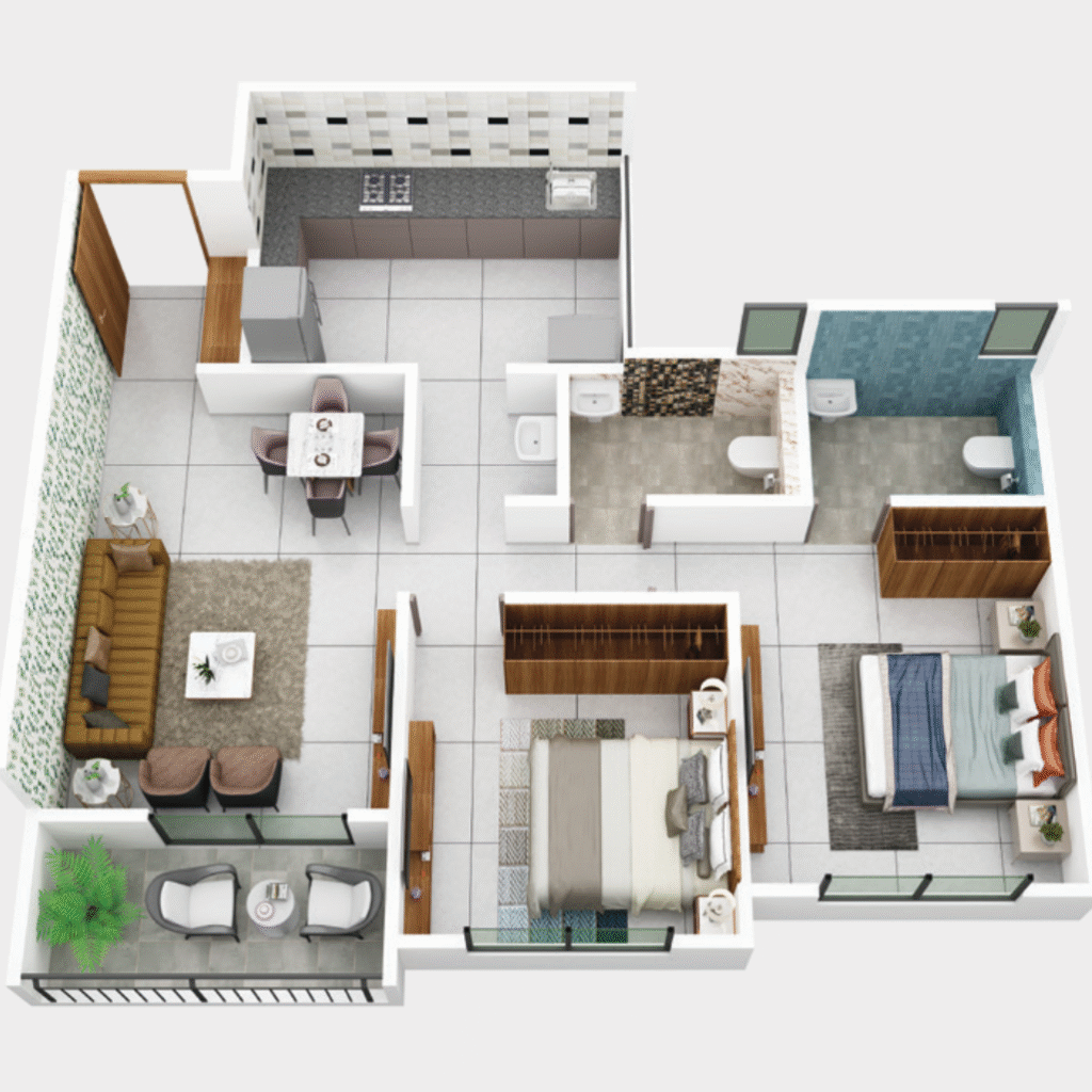 ✨ Explore modern 3D interiors for 2 BHK flats in Kondhwa – designed for young families & smart living.
