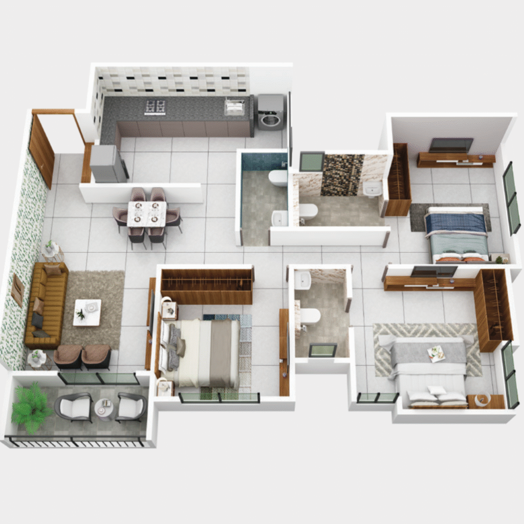 ✨ Step into premium 3D interiors for 3 BHK flats in Kondhwa – spacious, elegant & future-ready.